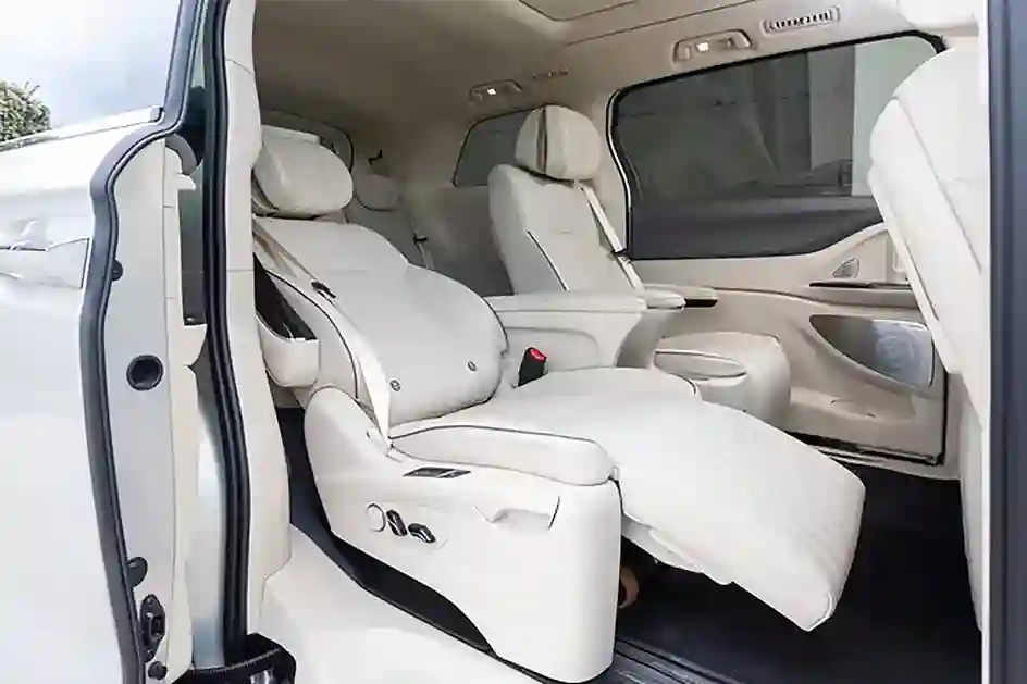 Возьмём раскладное кресло с оттоманкой: на нем в пути можно расслабиться и отдохнуть почти так же хорошо, как и в домашней постели. По шоссе минивэн идёт мягко, съедая все неровности активной подвеской. Голова спящего не будет мотаться из стороны в сторону при перестроениях благодаря поворачиваемым «ушкам» на подголовниках.