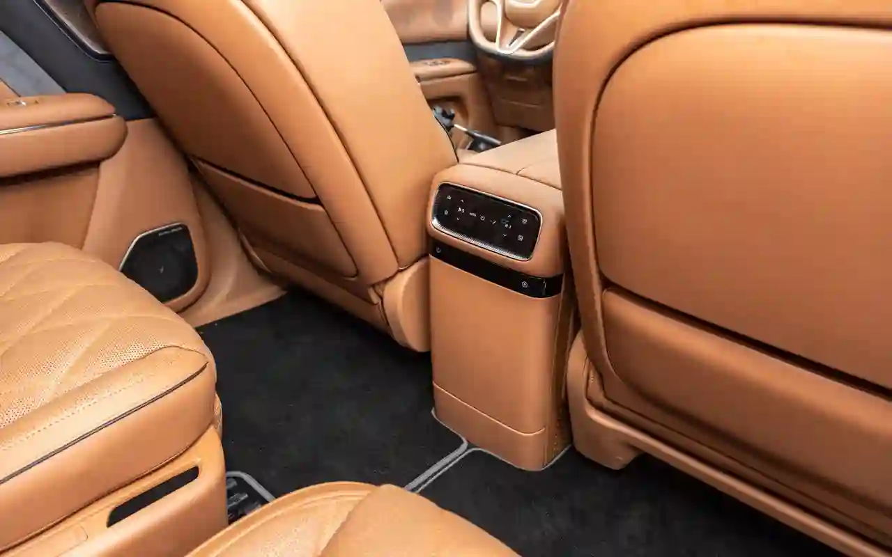 Погрузившись на драйверское место и нажав лишь одну клавишу на центральной консоли, можно подстроить его профиль эксклюзивно под себя: сиденье будто обволакивает спину с учетом анатомических особенностей. Такого мы, пожалуй, еще не встречали. Добавьте сюда 10-точечный массаж в спинках, 6-точечный массаж подушек первого и второго рядов и 4-точечный массаж для ног правого кресла во втором ряду плюс режим нулевой гравитации и вы попросту не захотите покидать эти апартаменты.
