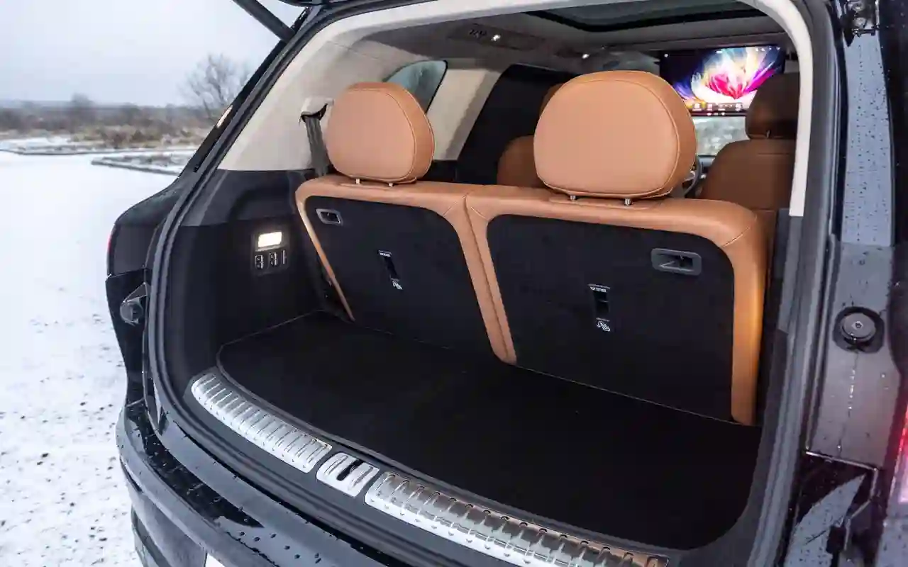 О банальных подогревах с вентиляциями говорить не имеет смысла. У каждого сиденья на втором ряду — отдельный 3,5-дюймовый цифровой пульт со всеми прибамбасами: хоть музыку включай, хоть караоке или видеоигру, либо же раскладывай в кровать, если захотелось вздремнуть. Откидной телевизор диагональю 21,4 дюйма на потолке, громадная панорамная крыша, электрические шторки на боковых окнах и столики в спинках передних кресел — все в VOYAH TAISHAN кричит о том, что пассажир здесь главный и машина только для него.